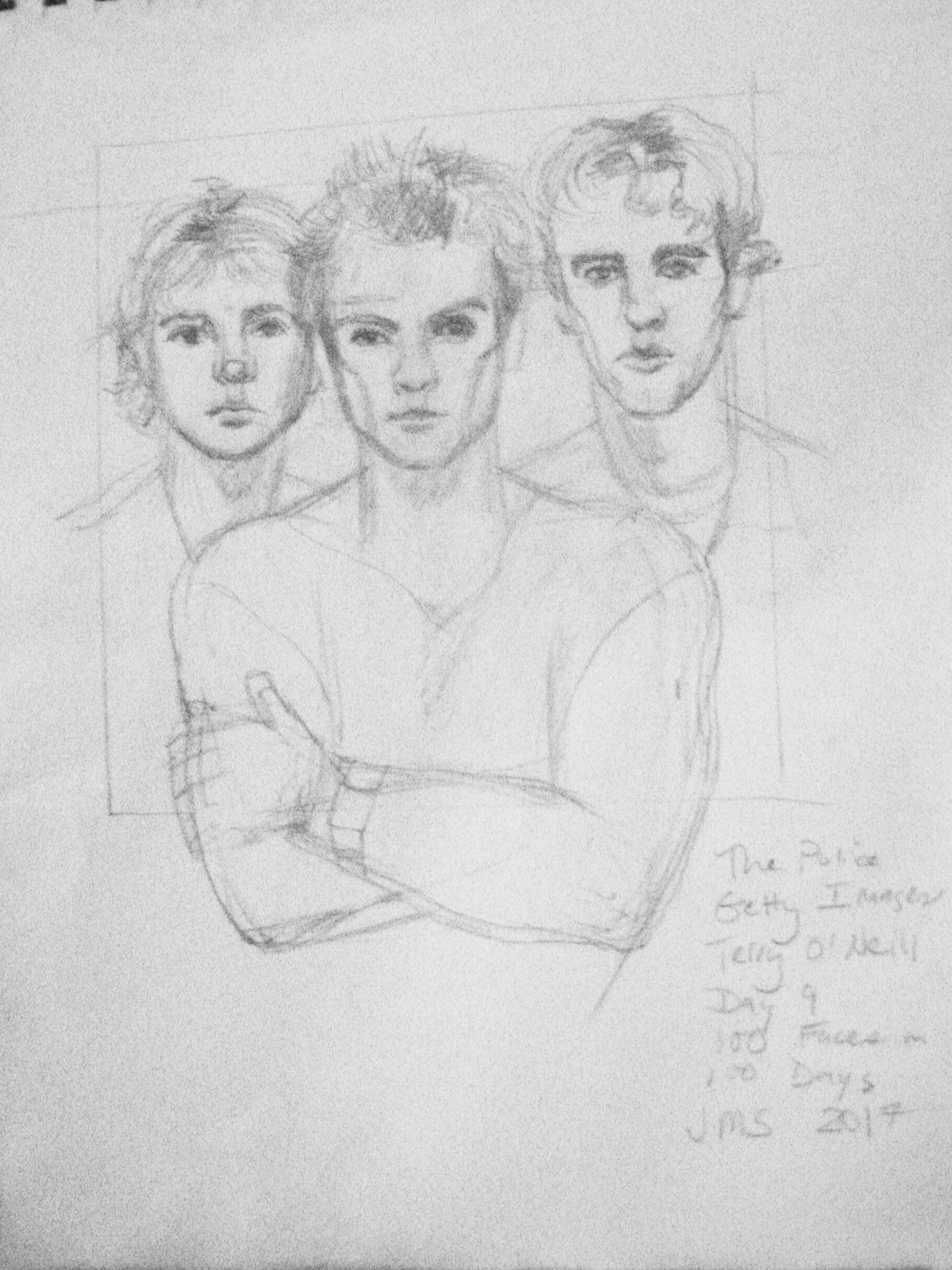 Previous Image The Police Here is a drawing from my 100 faces in 100 days challenge. Pictured are the famous 1980s rock band, The Police. I used a photo by photographer, Terri O’Neill, (1982) as reference for the drawing. Share this: Click to email a link to a friend (Opens in new window) Email TweetLike Loading...