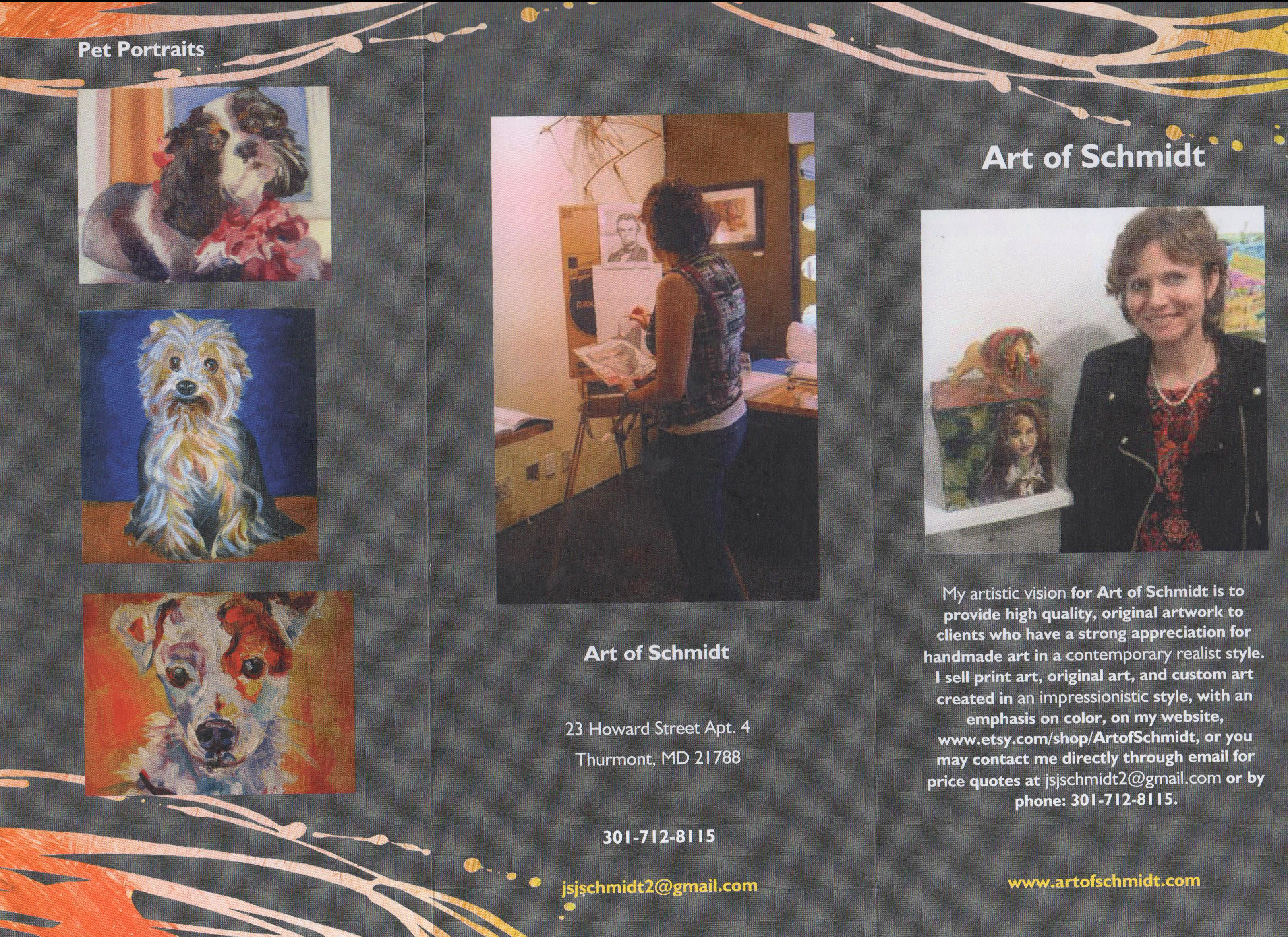 Next Image Art of Schmidt Brochure 3, jpg This is the front of the brochure for my custom art brochure. Share this: Click to email a link to a friend (Opens in new window) Email TweetLike Loading...