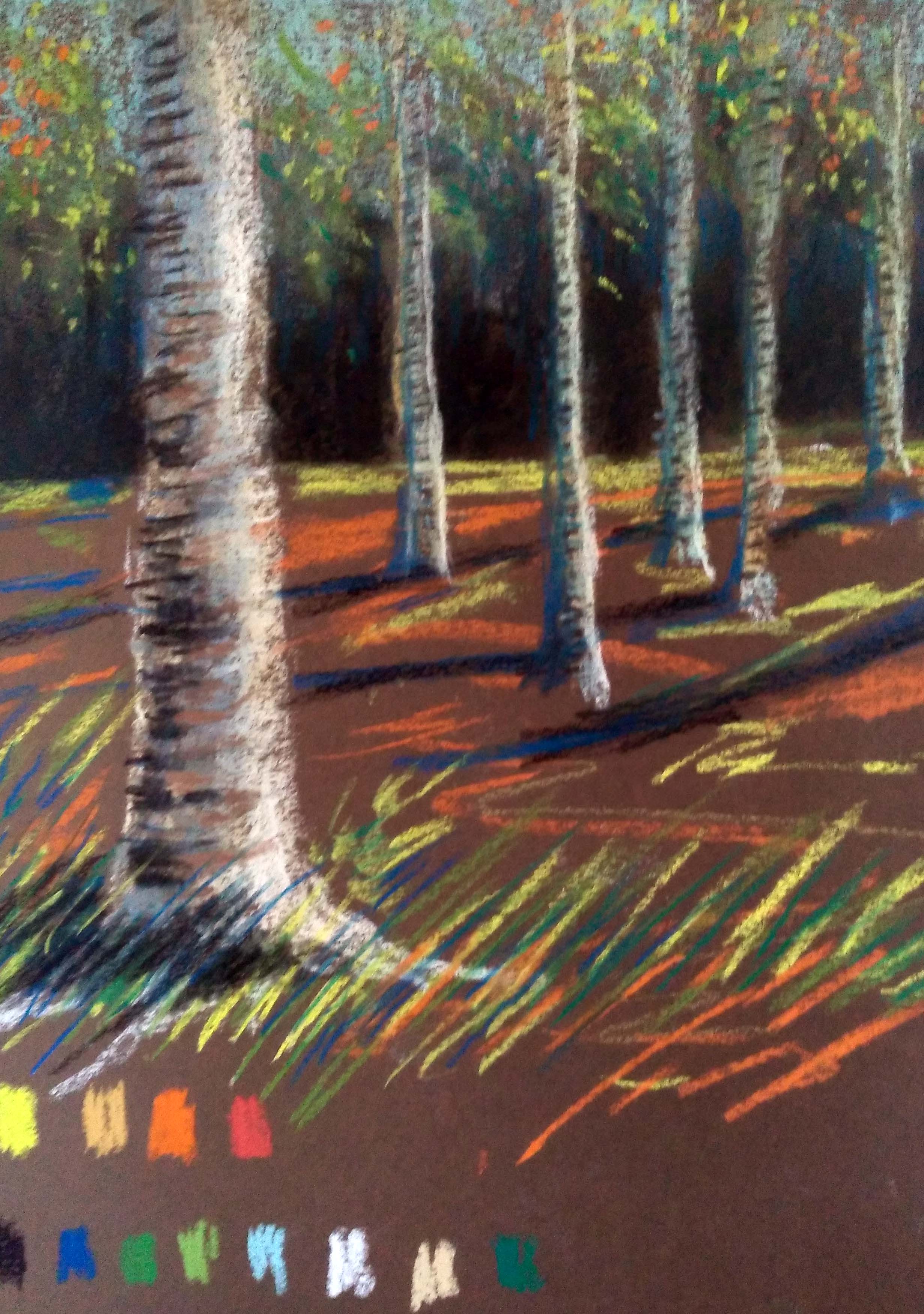 The courses I am teaching include ACR187 Continuing Pastels with Landscapes, and ACR181 Drawing and Painting: A Mixed Media Survey. Below are some samples of the projects from these courses, so you can get a sneak preview!