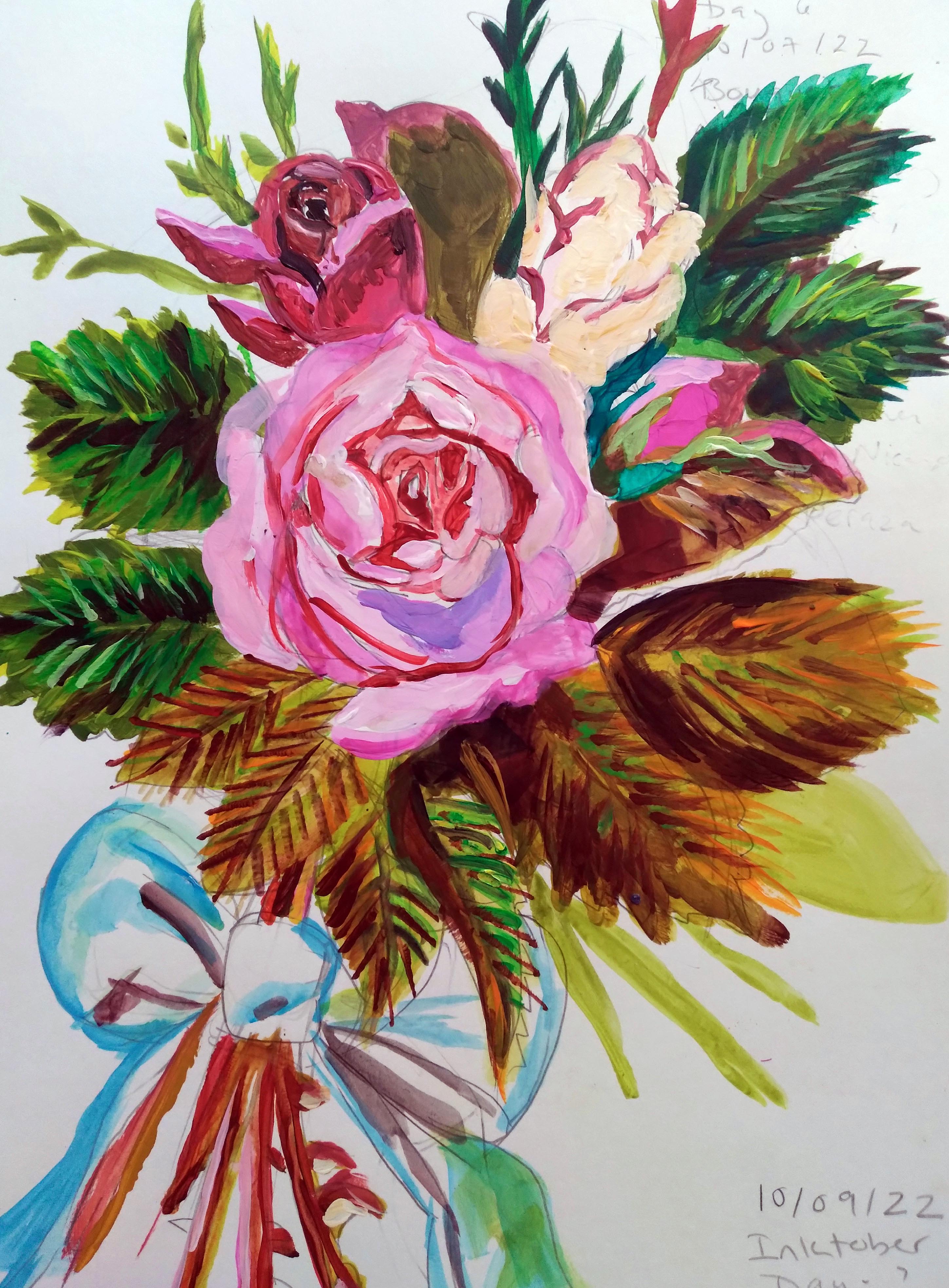However, if I am just experimenting in my sketchbook with ideas, I will sometimes use cheaper products. But again, using better quality supplies is usually a more enjoyable art experience for me. Often, I work with cheaper brushes the hairs fall out and need to be replaced much sooner. And I have spent a lot of time picking out stray brush hairs from canvases or trying to work with cheap soft pastels that will not “stick” to the pastel paper. In this instance, paying additional money for quality soft pastels, such as Rembrandts, is worth it over saving a few dollars with cheaper brands, such as off-label art products like Artist’s Loft. Or, I used the wrong kind of paper for watercolor or ink, and it ended up buckling or pilling my watercolor or ink drawing. All this to say, sometimes saving money is not worth it, and that is just one of the reasons why art is so expensive. As artists, we have to charge more to get a return for our investment, just like any other professional craftsperson, such as a contractor, interior designer, fashion designer, etc. That’s it for today, but next week I will review a few other reasons for the high cost of the artwork. On the subject of artwork, I am featuring some highlights from my Inktober challenge for 2022 that I worked on last fall. Enjoy and thanks for stopping by!