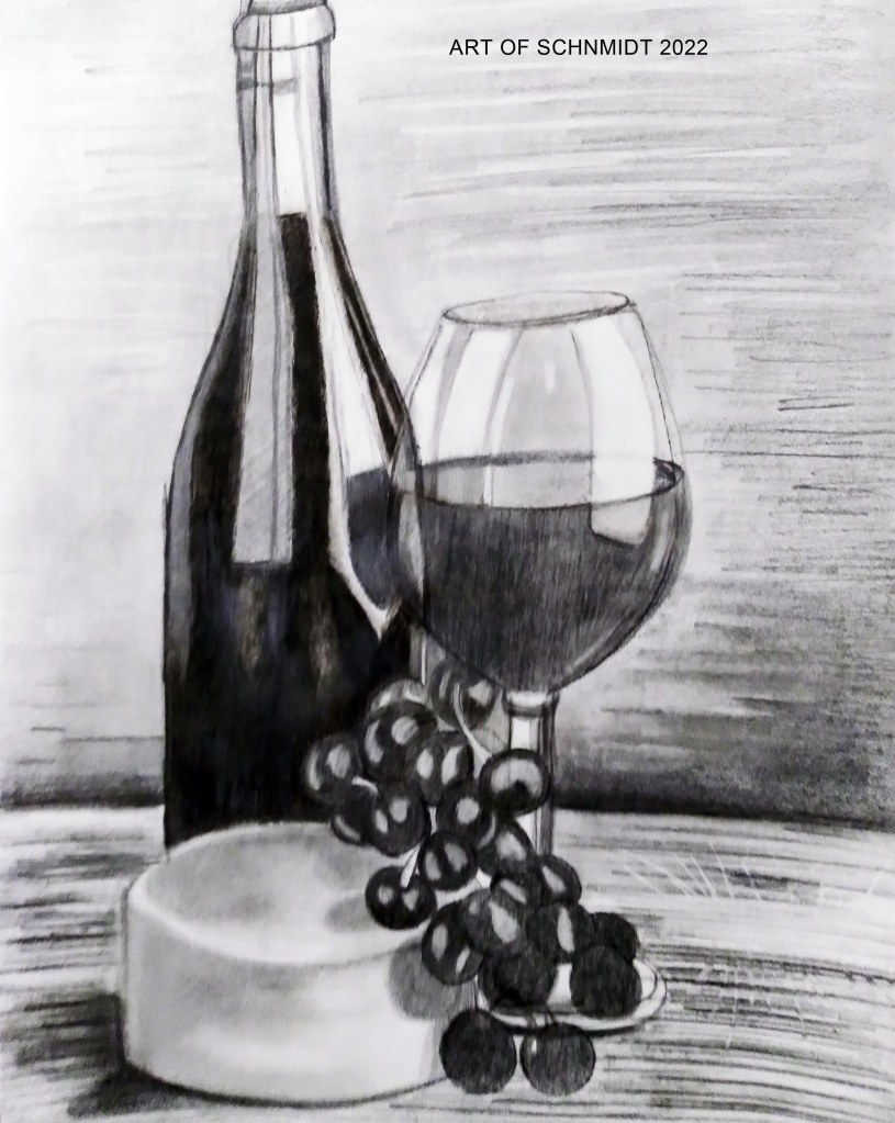 Note: This drawing is a copy I drew based on a sketch created by Steve Pearce in his book, Drawing Still Lifes, published by Walter Foster, 2013, pgs. 8-9. I use it solely for teaching beginner drawing techniques in my Classic Drawing course.Note: This drawing is a copy I drew based on a sketch created by Steve Pearce in his book, Drawing Still Lifes, published by Walter Foster, 2013, pg 7, and also from a virtual art tutorial, How to Shade with Pencil for Beginners, Rapid Fire Art, http://www.youtube.com . I make use of this sketch when teaching my Classic Drawing course to explain how a light source acts upon an object to create value.Note: This is a copy I sketched from a you tube tutorial, Gettin’ Sketchy, 30 Minute Drawing Excercise, Lemon, The Virtual Instructor, http://www.youtube.com. It’s an extra excerise I make available to my pastel students when and if, they ask for a longer demonstration for shading than I can provide in class.Note: This drawing is a copy I drew based on a sketch created by Steve Pearce in his book, Drawing Still Lifes, published by Walter Foster, 2013, pg 23. The wine and cheese sketch is a final project in my Classic Drawing course.