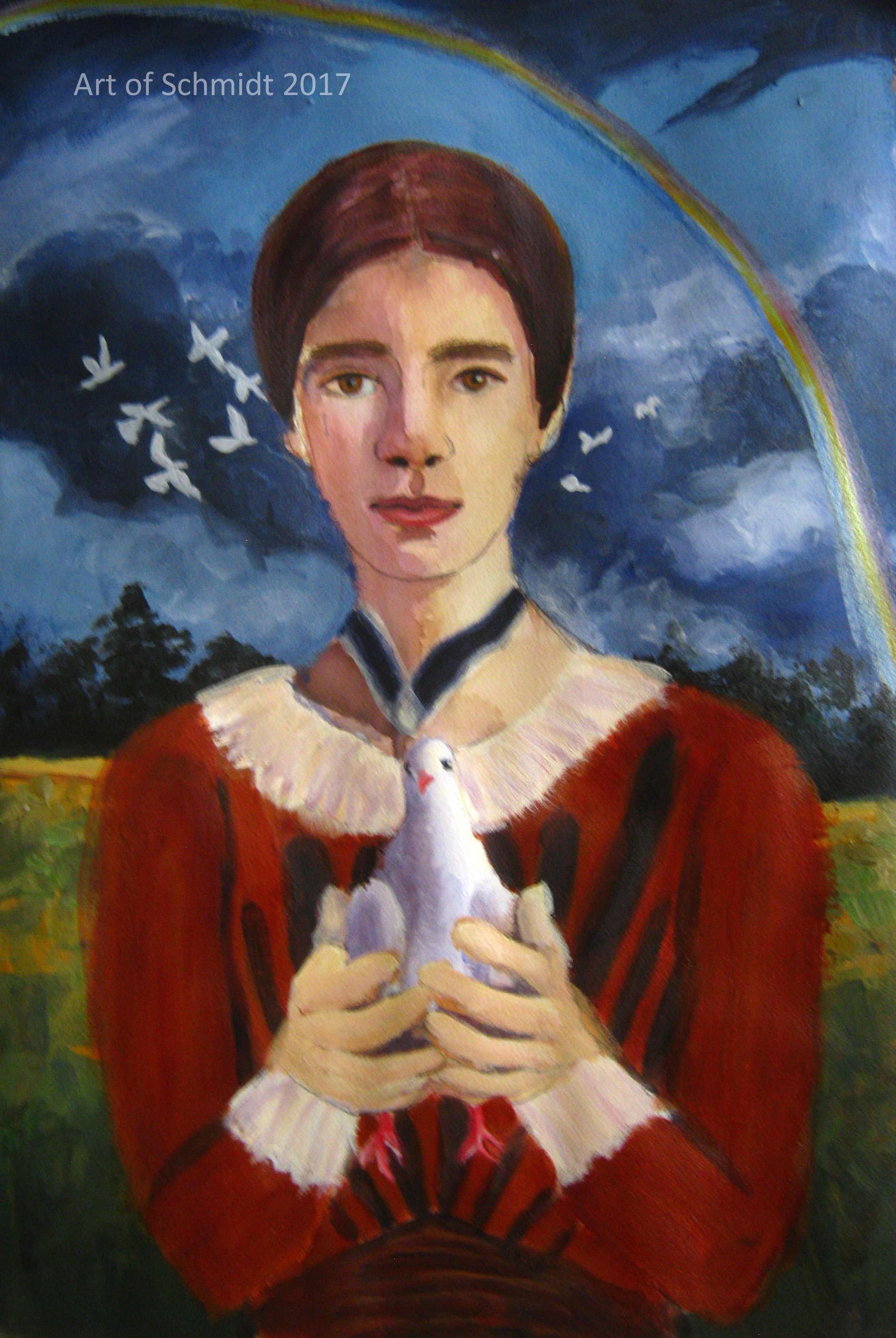 Previous Image Next Image Hope is the Thing with Feathers This painting was inspired by an Emily Dickinson poem, Hope is the Thing with Feathers. Hope is the Thing with Feathers, acrylic on prepared watercolor paper, 16 x 20 inches, 2017, Jodie Schmidt. Share this: Click to email a link to a friend (Opens in new window) Email TweetLike Loading...