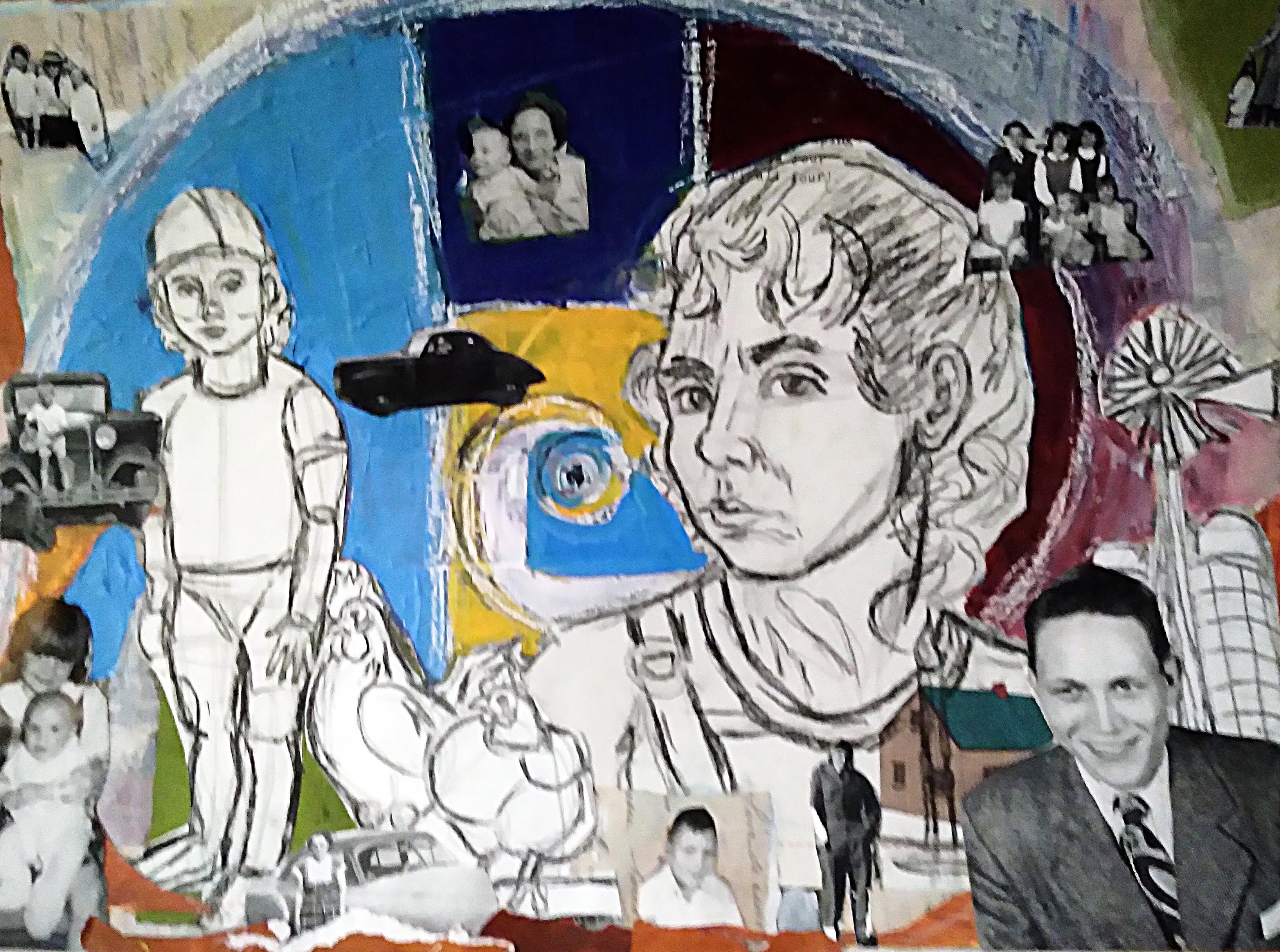 In the past, I have usually tried to resolve issues with unfinished artwork, sometimes starting over from scratch; i.e. Creating a brand new drawing on a new substrate and re-surfacing the canvas by sanding it with heavy grit sandpaper, so it can be re-gessoed. Other days, when I am more desperate or frustrated, I throw it in the trash, never to be seen again. Unless of course, my husband gets to it before I take out the trash. In which case, he fishes it out and says, ‘Why did you throw this away?” Or, some variation on that theme usually ensues when he finds my rejected art. At this point, the amount of unsatisfactory art and even uncompleted art is starting to grow and I am wondering what should I do with all of this stuff? Give it away to friends/family, donate it to Goodwill, toss or recycle it, or if I am liking this idea more, try to finish the unfinished art and post about it to keep myself accountable. And finally, what about those unsatisfactory pieces that I would otherwise throw away? Can they find a new life in my sketchbook, or in a mixed media piece? In one of my latest collages, I did just that, up-cycled old sketches into a totally new piece! It was so much fun and really got my creative juices flowing! This brings me to another point, I wanted to share that plans are in the works to teach a course that teaches you how to upcycle your old sketches and ephemera and tell your family story through narrative art. I will let you know when the details get finalized!